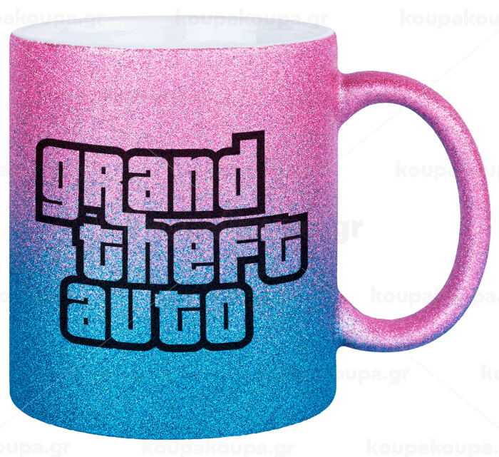 GTA (grand theft auto), Κούπα Χρυσή/Μπλε Glitter, κεραμική, 330ml