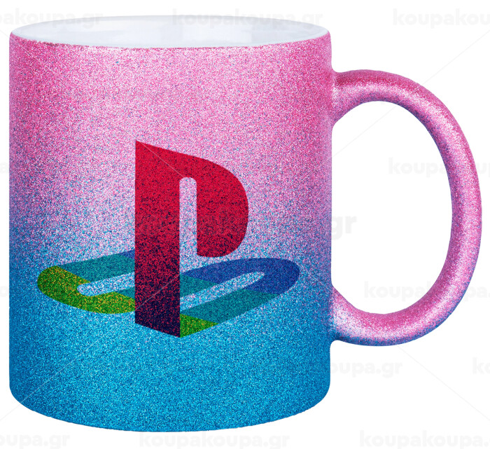 Playstation, Κούπα Χρυσή/Μπλε Glitter, κεραμική, 330ml