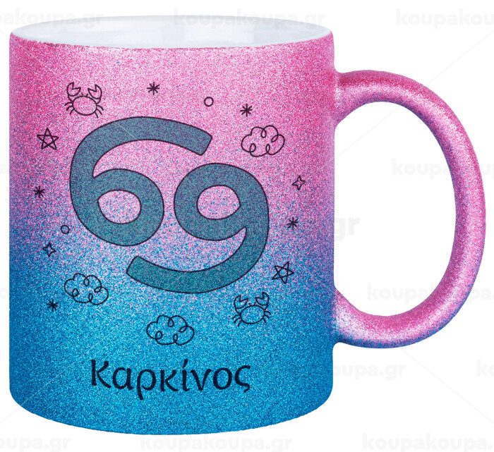Ζώδια Καρκίνος, Κούπα Χρυσή/Μπλε Glitter, κεραμική, 330ml