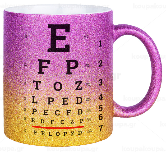 EYE test chart, Κούπα Χρυσή/Ροζ Glitter, κεραμική, 330ml