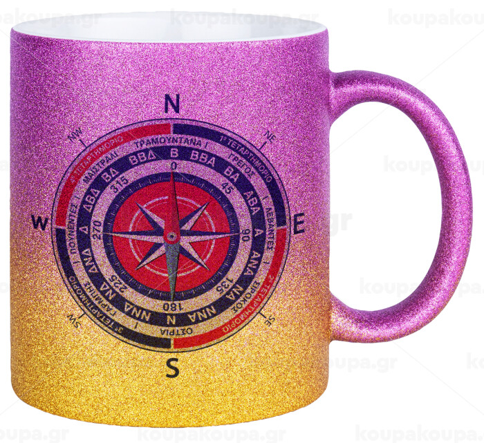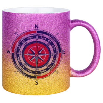 Ανεμολόγιο χάρτης πυξίδα ναυτικού, Κούπα Χρυσή/Ροζ Glitter, κεραμική, 330ml