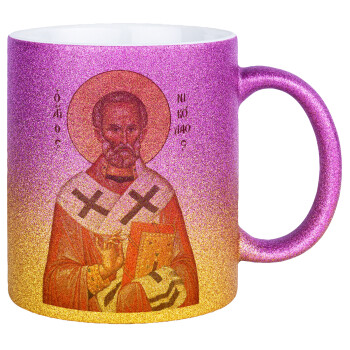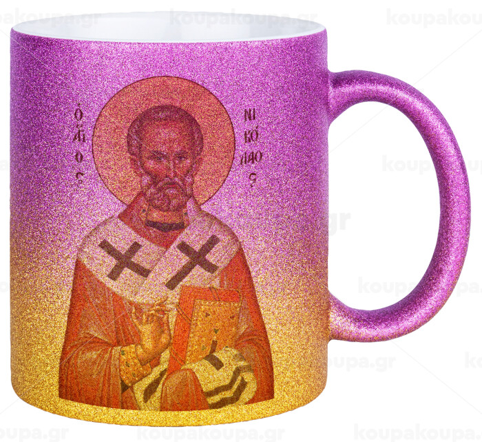 Άγιος Νικόλαος, Κούπα Χρυσή/Ροζ Glitter, κεραμική, 330ml