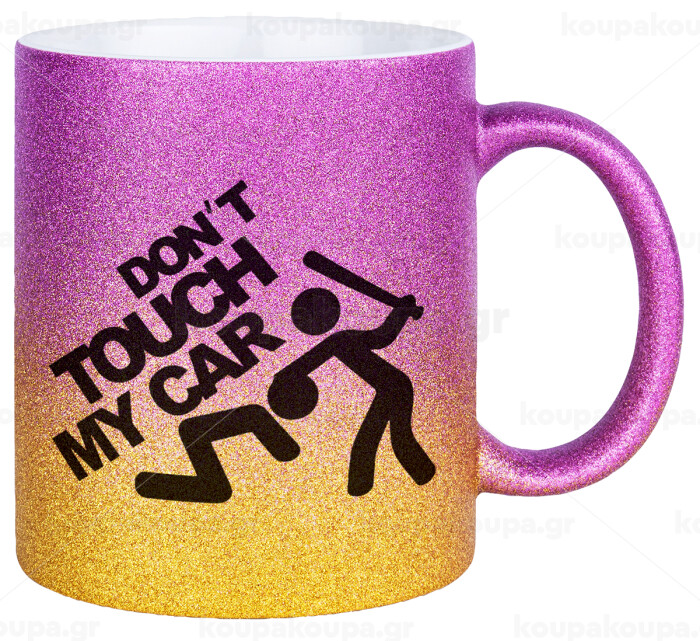 Don't touch my car, Κούπα Χρυσή/Ροζ Glitter, κεραμική, 330ml