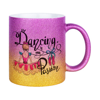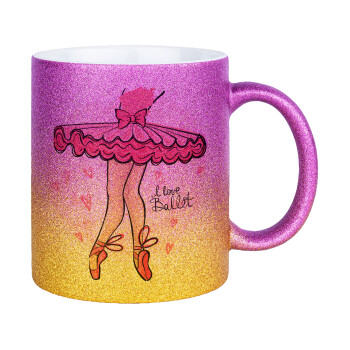 Ballerina in Paris, Κούπα Χρυσή/Ροζ Glitter, κεραμική, 330ml