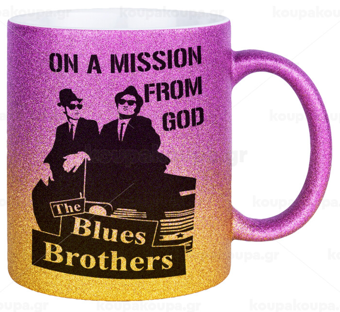 Blues brothers on a mission from God, Κούπα Χρυσή/Ροζ Glitter, κεραμική, 330ml