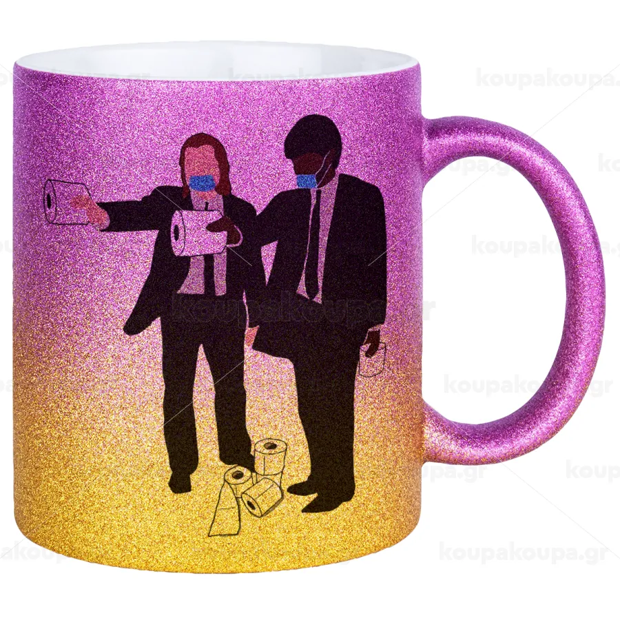 Pulp Fiction 3 meter away, Κούπα Χρυσή/Ροζ Glitter, κεραμική, 330ml
