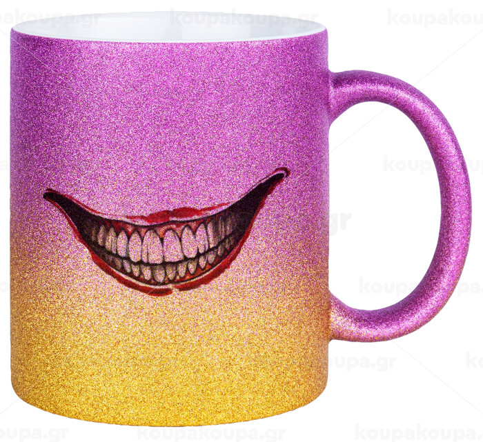 Joker smile, Κούπα Χρυσή/Ροζ Glitter, κεραμική, 330ml