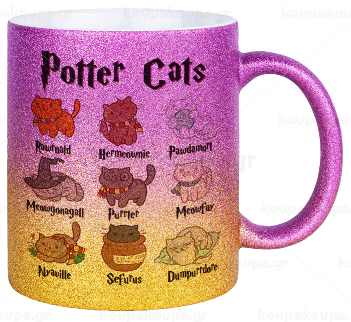 Potter Cats, Κούπα Χρυσή/Ροζ Glitter, κεραμική, 330ml
