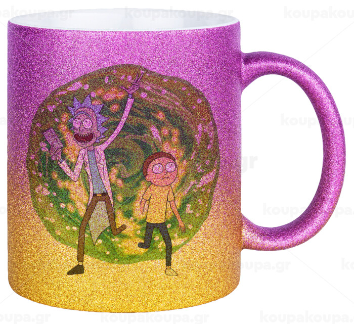 Rick and Morty, Κούπα Χρυσή/Ροζ Glitter, κεραμική, 330ml