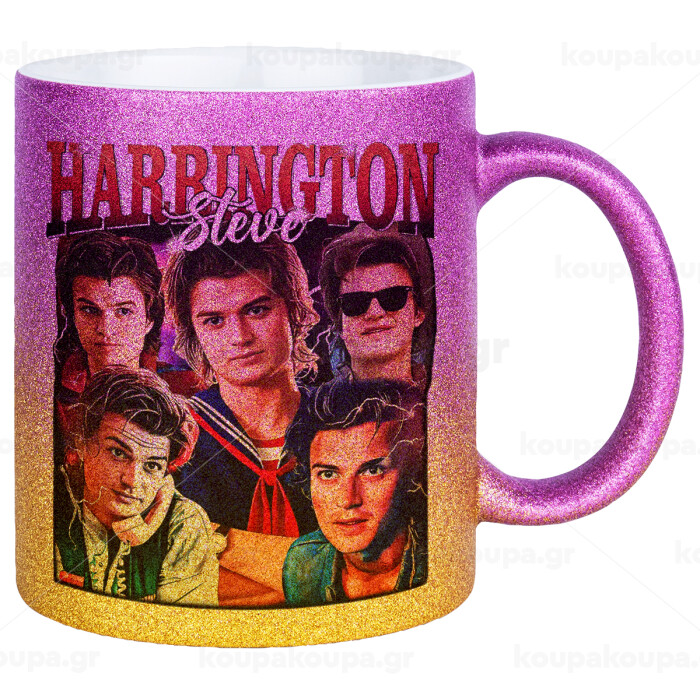 Steve Harrington, Stranger Things, Κούπα Χρυσή/Ροζ Glitter, κεραμική, 330ml