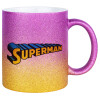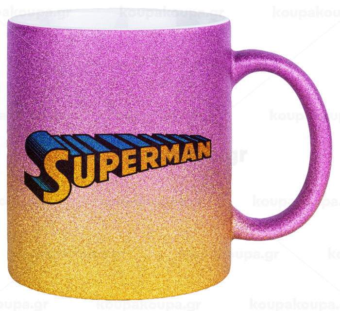 Superman vintage, Κούπα Χρυσή/Ροζ Glitter, κεραμική, 330ml