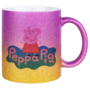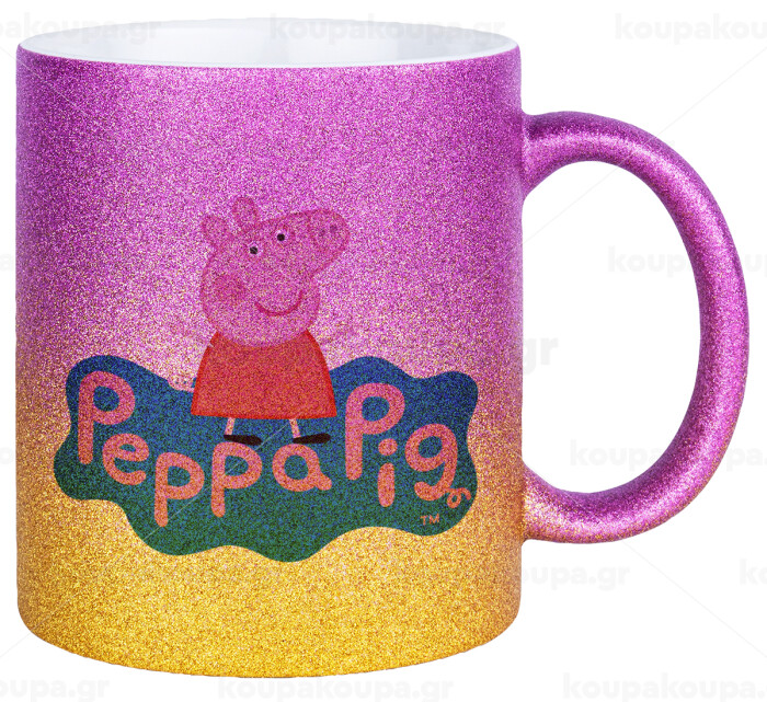 Πέππα το γουρουνάκι μπλε με όνομα, Κούπα Χρυσή/Ροζ Glitter, κεραμική, 330ml