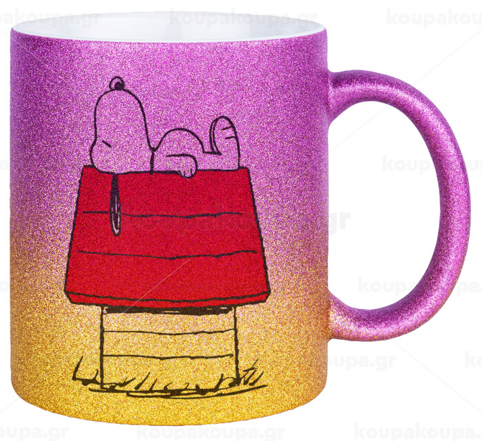 Το σπίτι του snoopy, Κούπα Χρυσή/Ροζ Glitter, κεραμική, 330ml