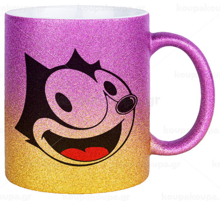 Felix the cat, Κούπα Χρυσή/Ροζ Glitter, κεραμική, 330ml