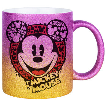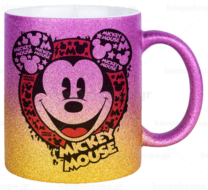 Mickey Mouse, Κούπα Χρυσή/Ροζ Glitter, κεραμική, 330ml