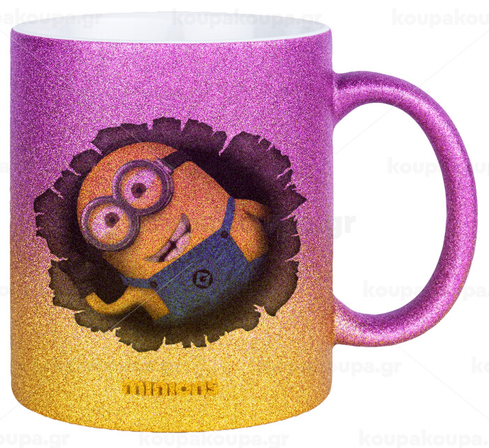 Minions hi, Κούπα Χρυσή/Ροζ Glitter, κεραμική, 330ml