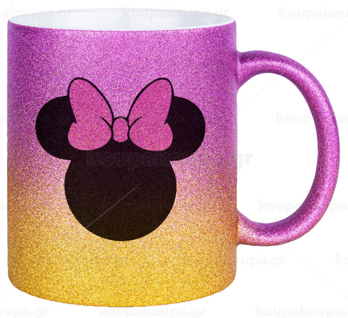 mouse girl, Κούπα Χρυσή/Ροζ Glitter, κεραμική, 330ml