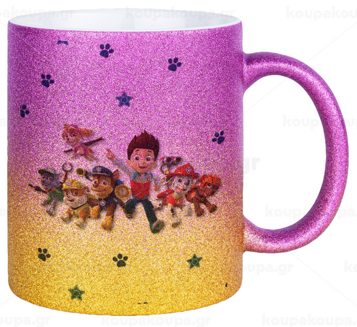 paw patrol, Κούπα Χρυσή/Ροζ Glitter, κεραμική, 330ml