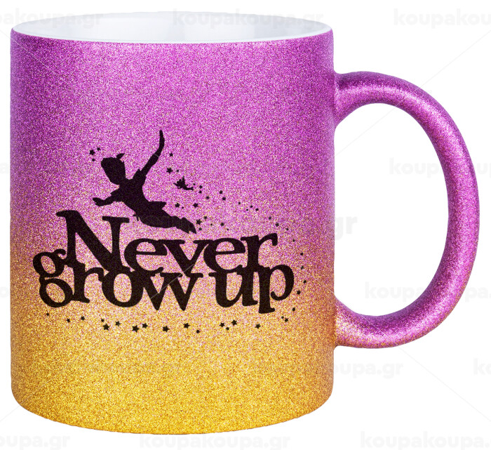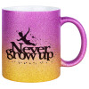 Peter pan, Never Grow UP, Κούπα Χρυσή/Ροζ Glitter, κεραμική, 330ml