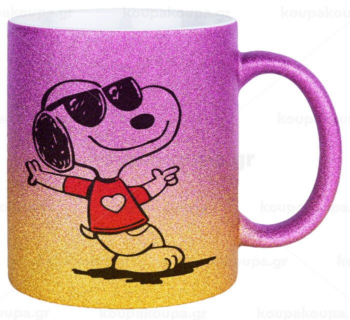 Snoopy καρδούλα, Κούπα Χρυσή/Ροζ Glitter, κεραμική, 330ml