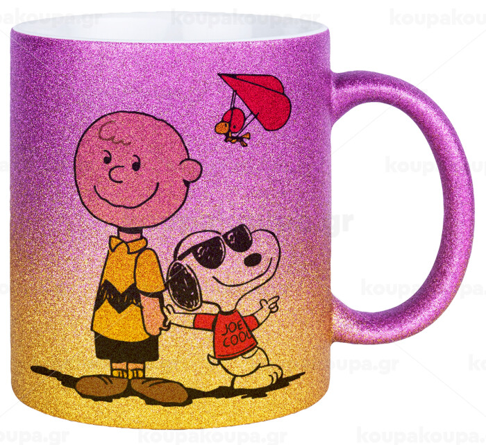 Snoopy & Joe, Κούπα Χρυσή/Ροζ Glitter, κεραμική, 330ml