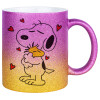 Snoopy Love, Κούπα Χρυσή/Ροζ Glitter, κεραμική, 330ml