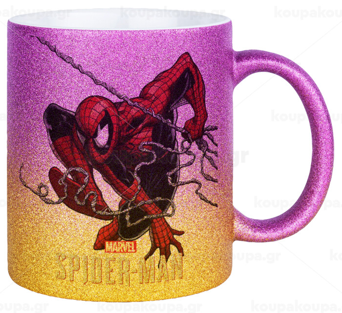 Spider-man, Κούπα Χρυσή/Ροζ Glitter, κεραμική, 330ml