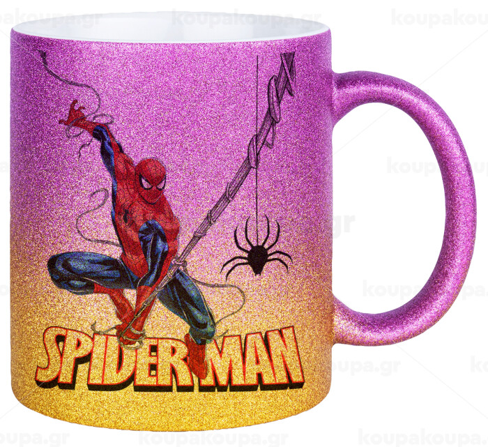 Spiderman fly, Κούπα Χρυσή/Ροζ Glitter, κεραμική, 330ml