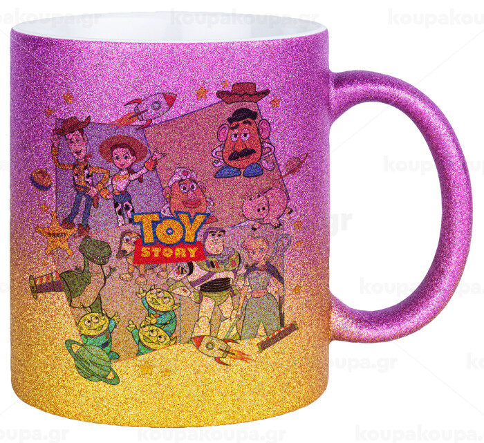 toystory characters, Κούπα Χρυσή/Ροζ Glitter, κεραμική, 330ml