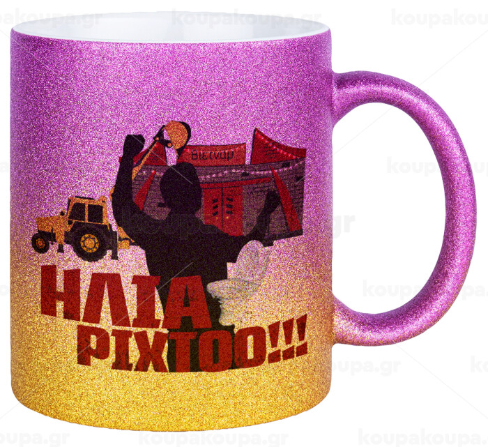 Ηλία ρίχτο!, Κούπα Χρυσή/Ροζ Glitter, κεραμική, 330ml