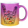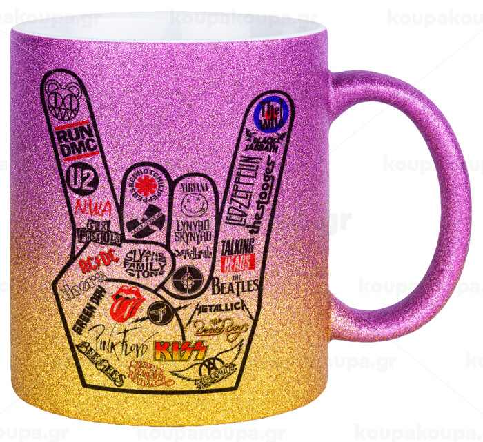 Best Rock Bands hand, Κούπα Χρυσή/Ροζ Glitter, κεραμική, 330ml