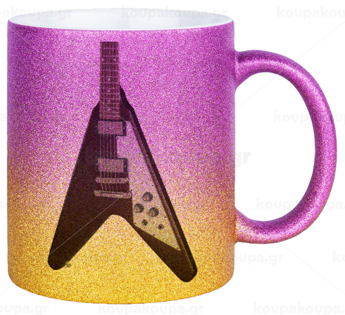 Guitar flying V, Κούπα Χρυσή/Ροζ Glitter, κεραμική, 330ml