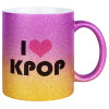 I Love KPOP, Κούπα Χρυσή/Ροζ Glitter, κεραμική, 330ml