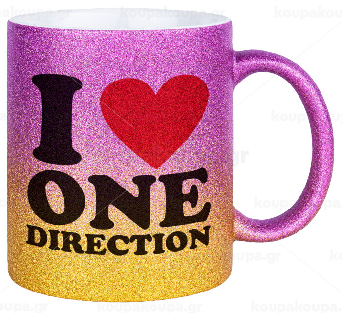 I Love, One Direction, Κούπα Χρυσή/Ροζ Glitter, κεραμική, 330ml