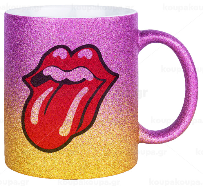 Rolling Stones Kiss, Κούπα Χρυσή/Ροζ Glitter, κεραμική, 330ml
