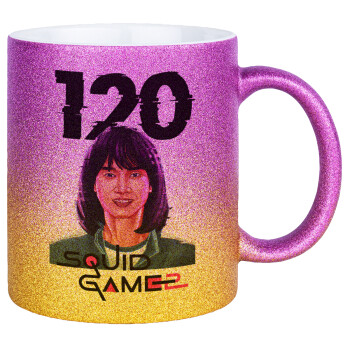 Squid game 120 Cho Hyun-ju, Κούπα Χρυσή/Ροζ Glitter, κεραμική, 330ml