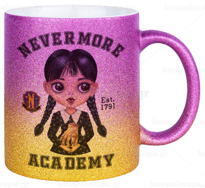 Wednesday Adams, nevermore, Κούπα Χρυσή/Ροζ Glitter, κεραμική, 330ml