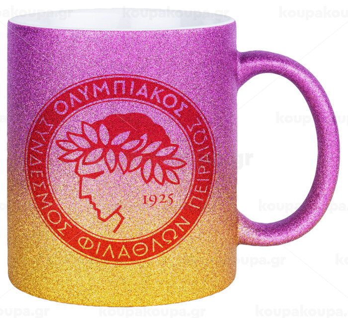 Ολυμπιακός, Κούπα Χρυσή/Ροζ Glitter, κεραμική, 330ml