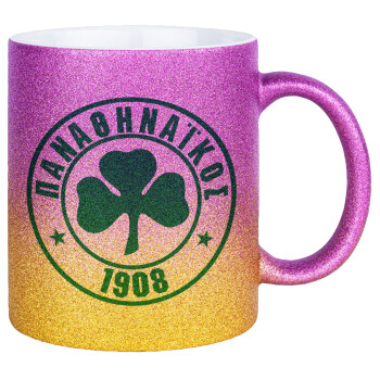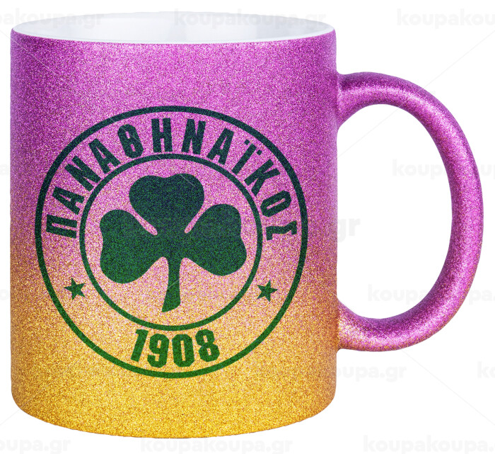 ΠΑΟ Παναθηναϊκός, Κούπα Χρυσή/Ροζ Glitter, κεραμική, 330ml