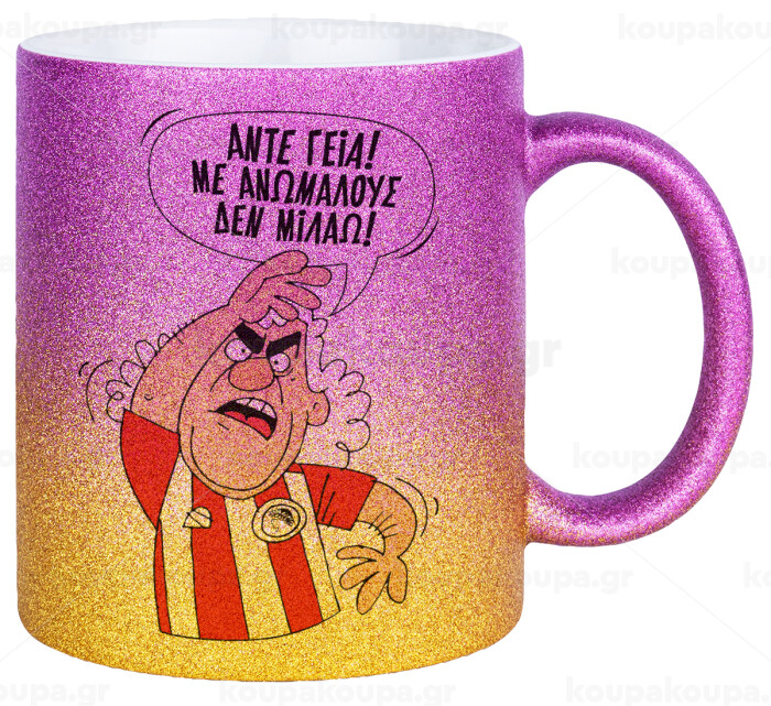 Τάκης, Άντε γεια, με ανώμαλους δεν μιλάω!, Κούπα Χρυσή/Ροζ Glitter, κεραμική, 330ml