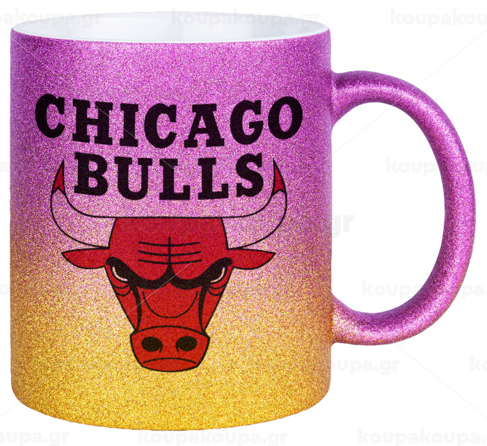 Chicago Bulls, Κούπα Χρυσή/Ροζ Glitter, κεραμική, 330ml