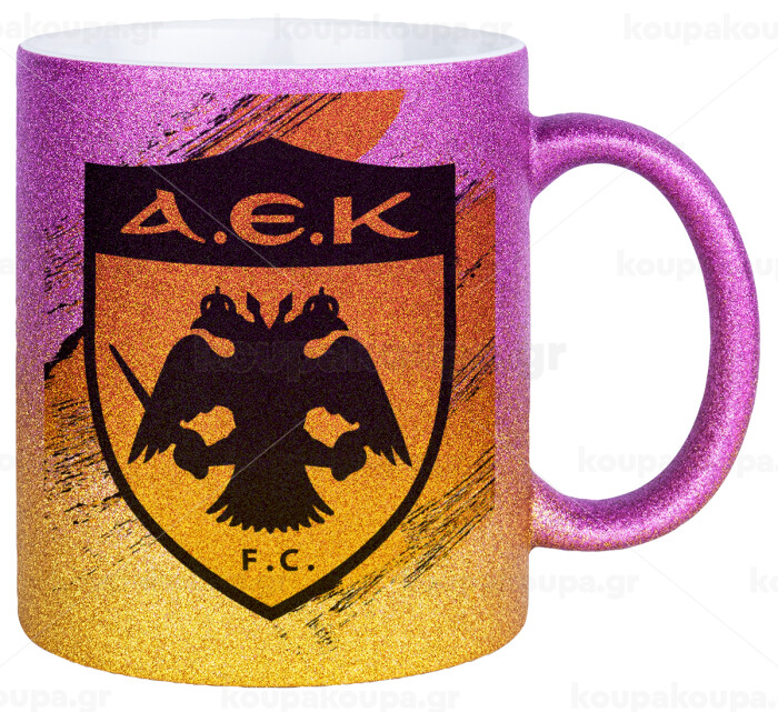 FC Α.Ε.Κ., Κούπα Χρυσή/Ροζ Glitter, κεραμική, 330ml