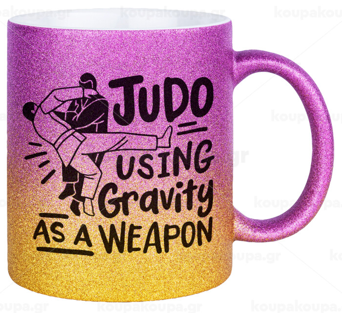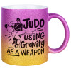 Judo using gravity as a weapon, Κούπα Χρυσή/Ροζ Glitter, κεραμική, 330ml