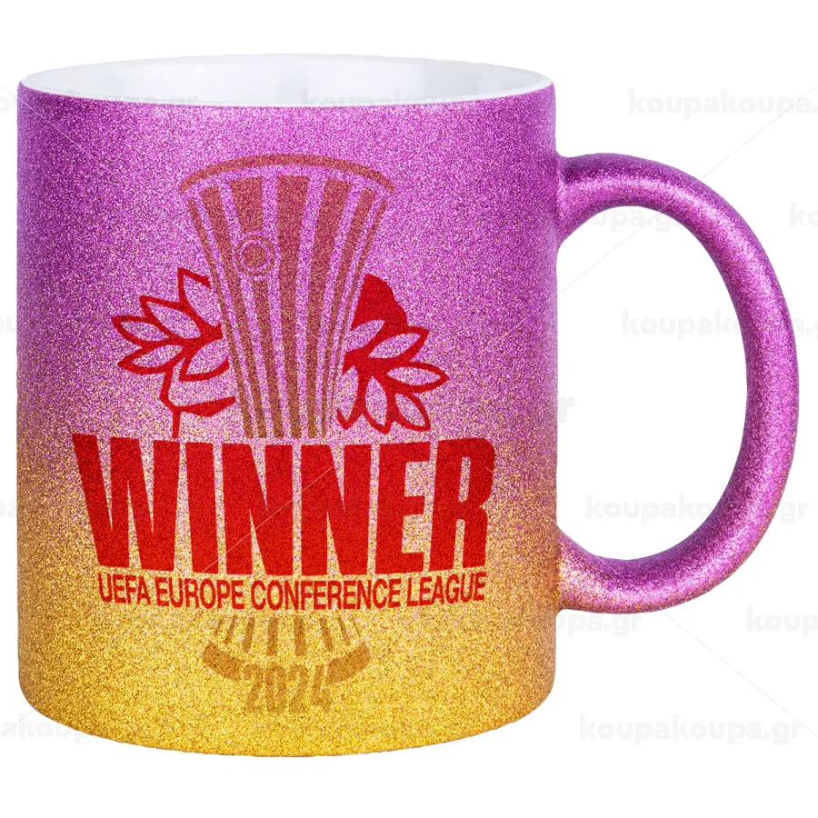 Europa Conference League WINNER, Κούπα Χρυσή/Ροζ Glitter, κεραμική, 330ml