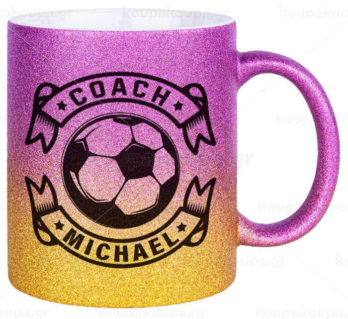 Soccer coach, Κούπα Χρυσή/Ροζ Glitter, κεραμική, 330ml