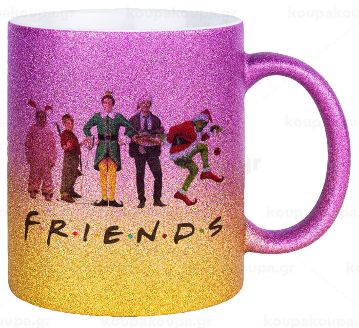 Christmas FRIENDS, Κούπα Χρυσή/Ροζ Glitter, κεραμική, 330ml