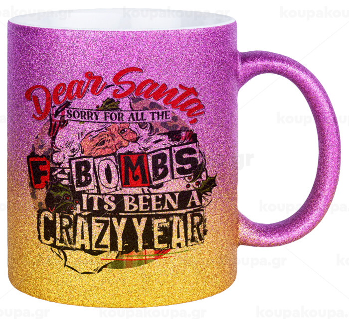 Dear Santa, sorry for all the F-bombs, Κούπα Χρυσή/Ροζ Glitter, κεραμική, 330ml