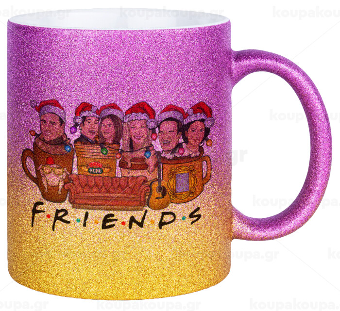 FRIENDS xmas, Κούπα Χρυσή/Ροζ Glitter, κεραμική, 330ml