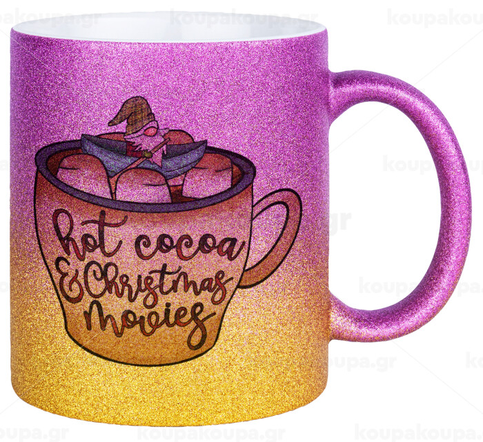 Hot Cocoa And Christmas Movies, Κούπα Χρυσή/Ροζ Glitter, κεραμική, 330ml