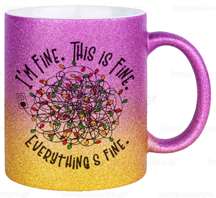 It's Fine I'm Fine Everything Is Fine, Κούπα Χρυσή/Ροζ Glitter, κεραμική, 330ml